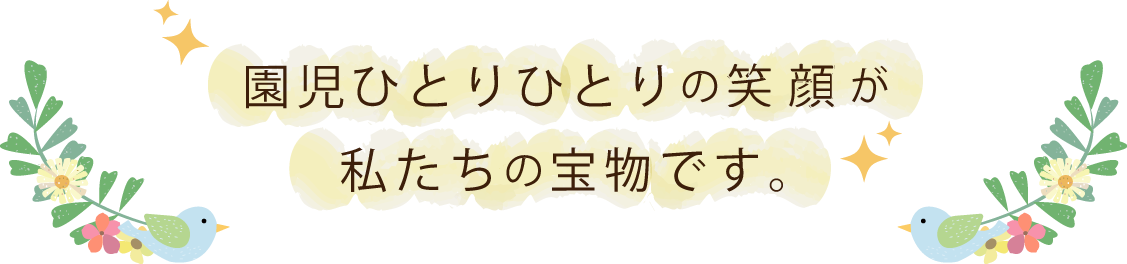 新しい時代の子どもたちへ幼児期にこそ創造性豊かに! これからの時代を担う子どもたちには、創意工夫を重ね、ユニークな発想を生み出すこと。無限の創造性を発揮することを期待します。 職員には、子どもを見る確かな「目」を持ち、保護者の声なき声に気づくこと。何事に対しても責任を持ち、誰かにそれを押し付けたりしない。自身を誇れる人として、子どもたちを導いてほしいと願っています。 我々は、様々な人とふれあい、経験の中で社会人として、人間としての成長ができる施設であるよう日々努力を惜しまず資質向上に努めています。